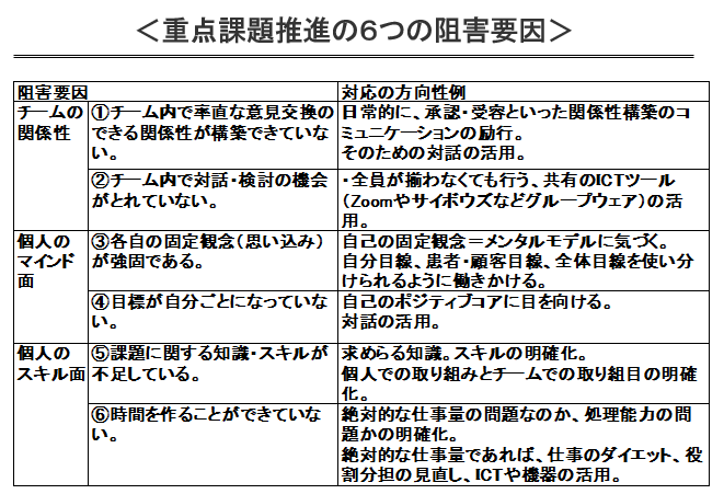 みなさんの会社・組織において、これらの阻害要因が重点課題推進のハードルになっていないでしょうか?是非、一度検討してみてください。
