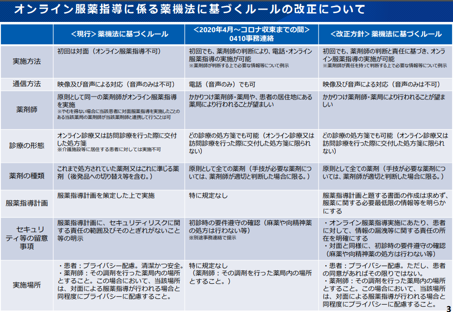 3.電話や情報通信機器を用いた服薬指導等に係る特例
