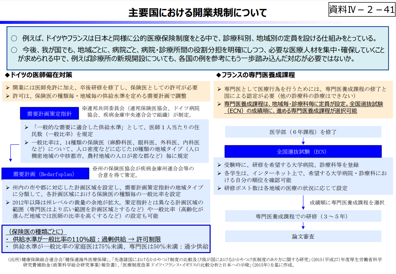 解決に向けてドイツやフランスの例を示しながら、一歩踏み込んだ開業規制の対応について必要性が示されています。