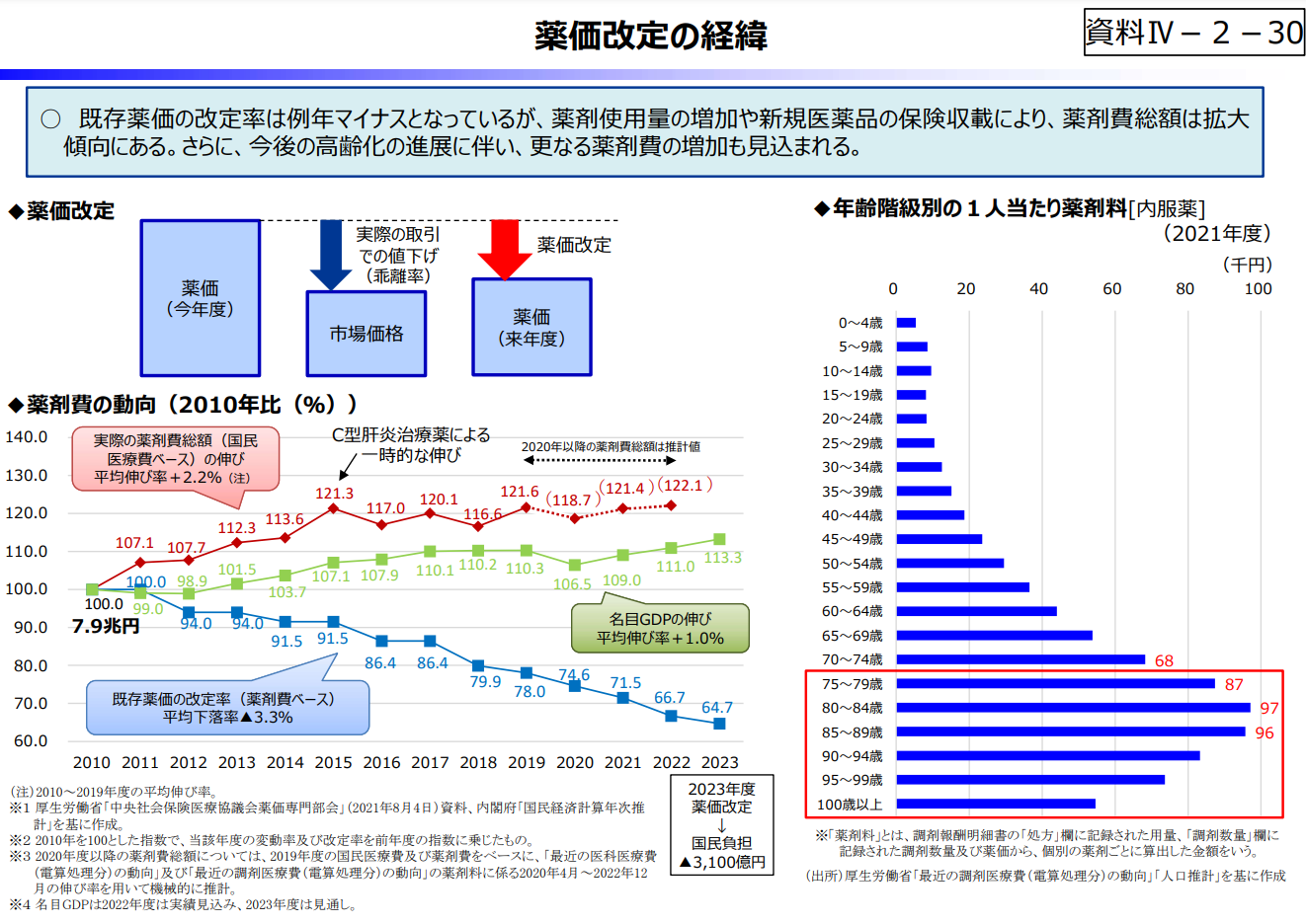 この傾向は今後も見込まれるもので、加えて高額医薬品の収載が増えていることもあり、更なる保険料や国庫負担の増大への懸念を示しています。