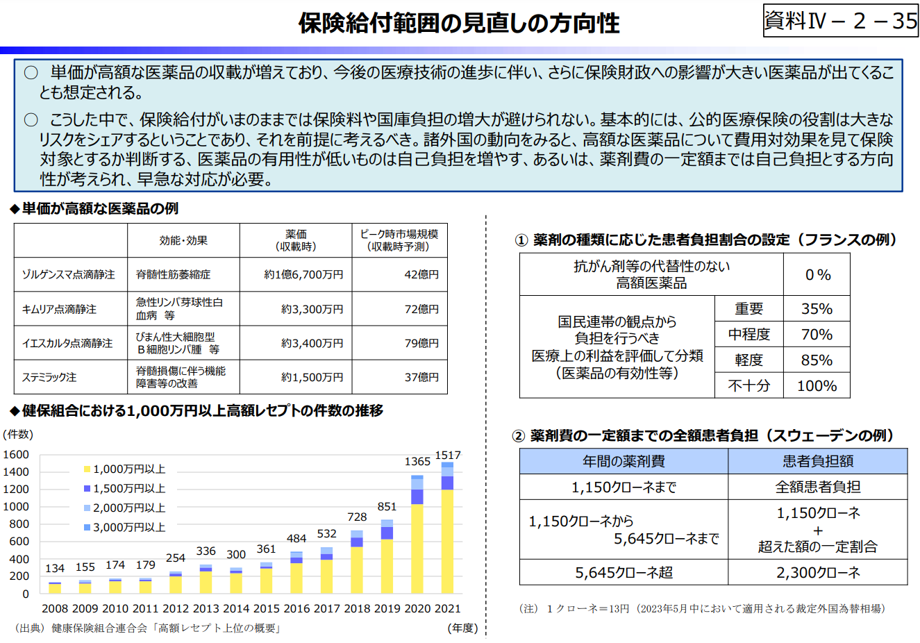 • 高額な医薬品について費用対効果を見て保険対象とするか判断する