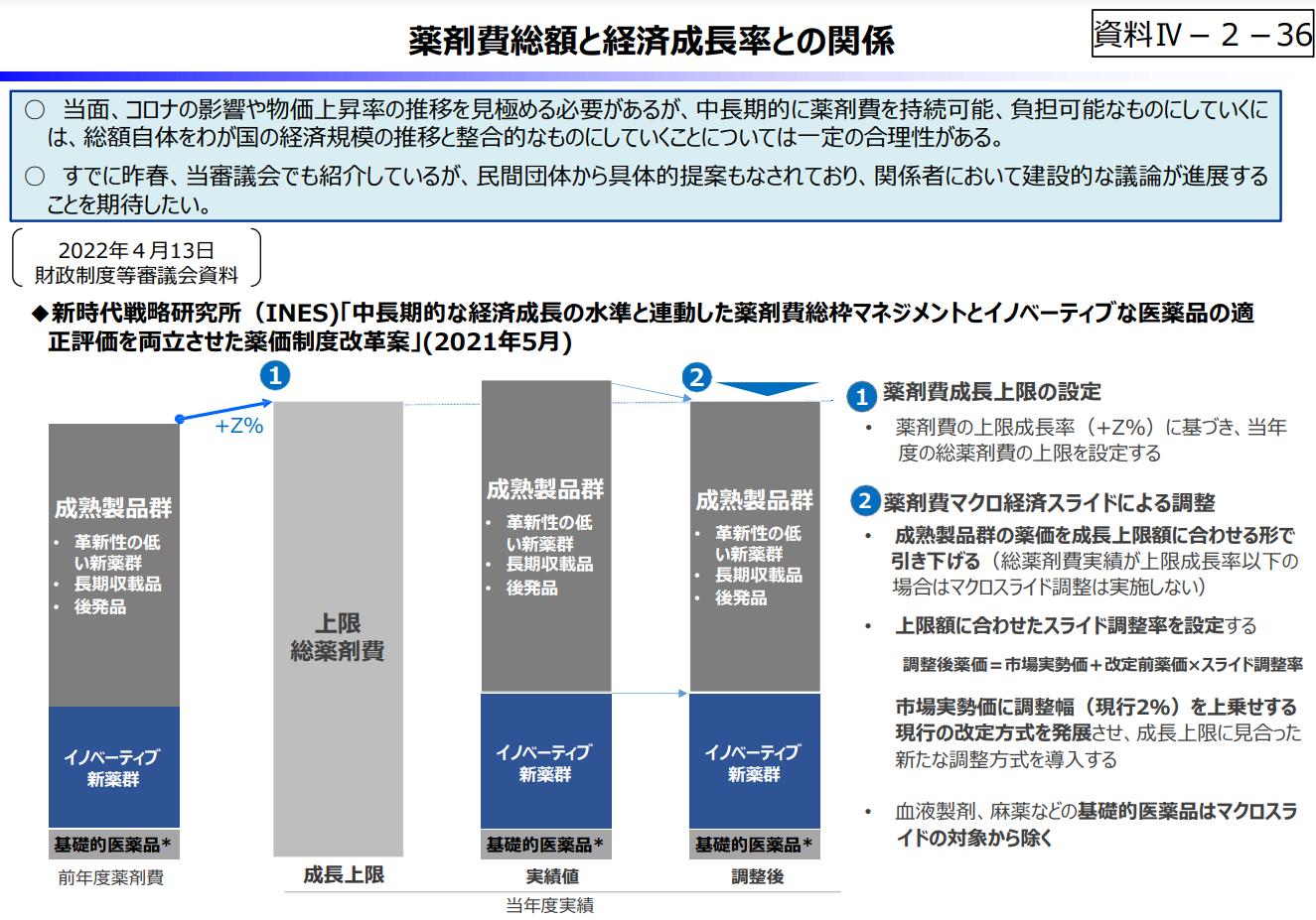 また、薬剤費総額の伸びと経済成長率の伸びが整合的なものにする仕組みを紹介し、議論の進展を期待する内容が示されています。