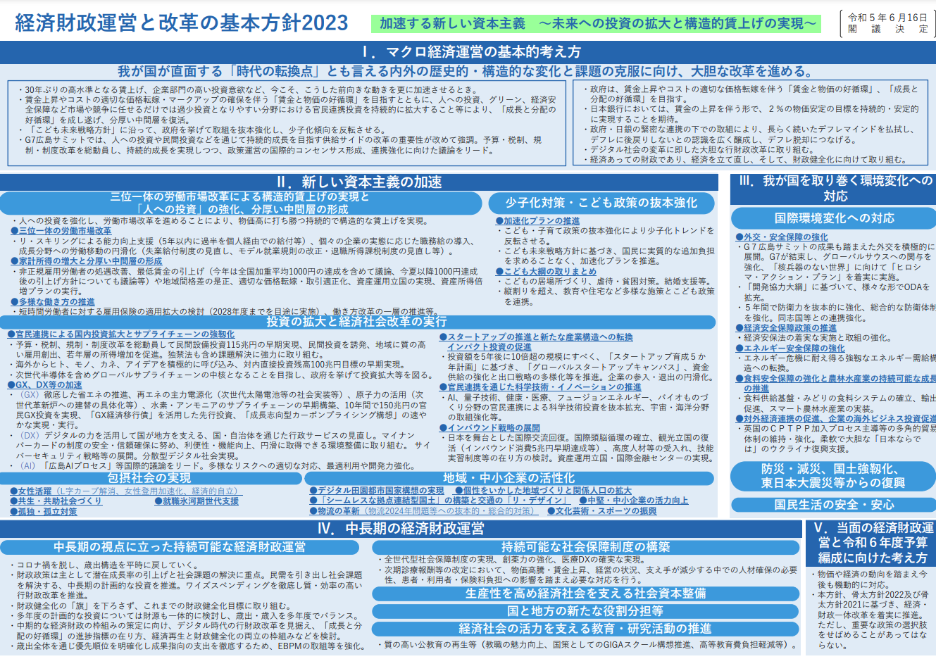 「経済財政運営と改革の基本方針(以下、骨太方針)2023」