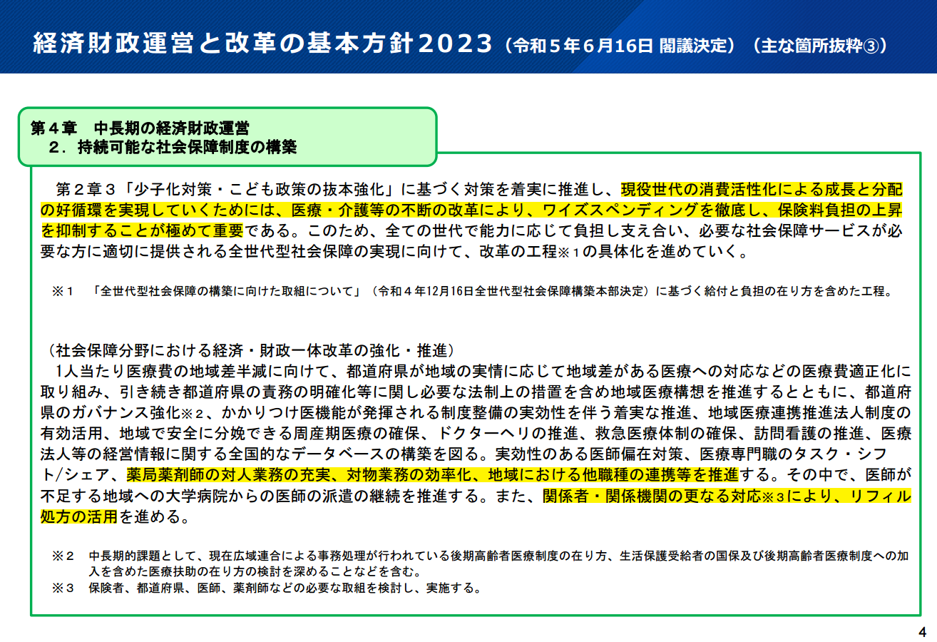 そのため、日本医師会・日本薬剤師会は、記者会見の骨太方針2023に対するコメントにおいて、
