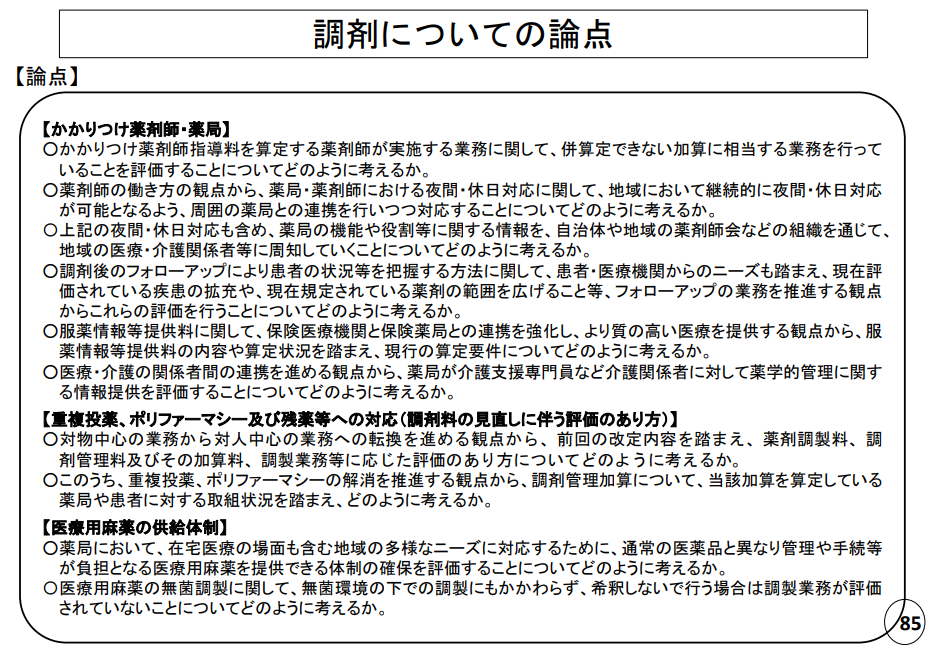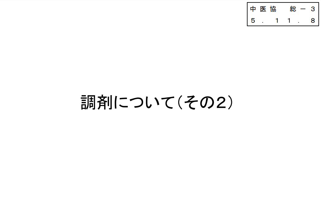 もしあれば、中医協での調剤に関する追加検討内容をおとどけする予定です。
