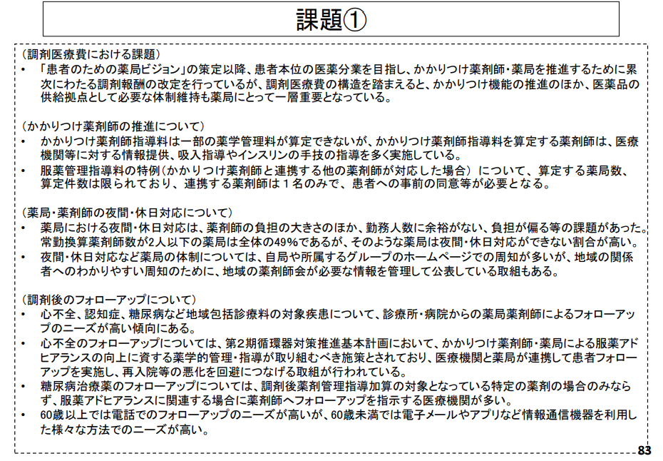 「薬剤師の働き方の観点から、薬局・薬剤師における夜間・休日対応に関して、