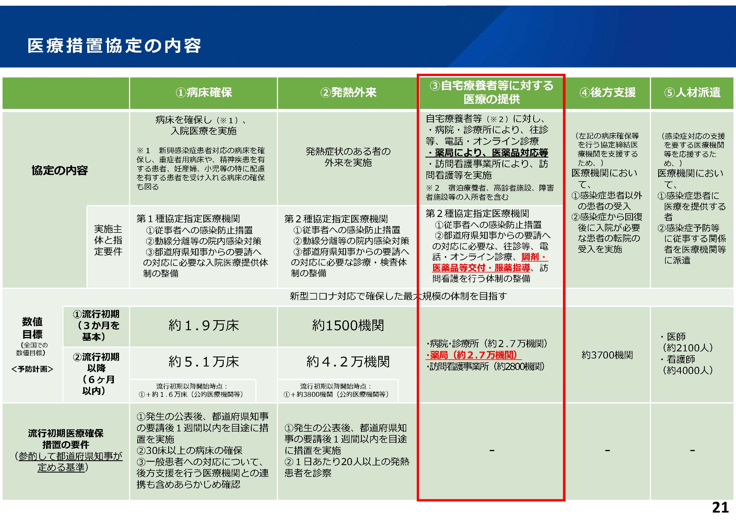 あくまでも、新型コロナウイルス感染症と同程度の感染症を想定した協定で、特性が大きく異なる事態があれば、協定内容を見直す等、機動的な対応が想定されています。