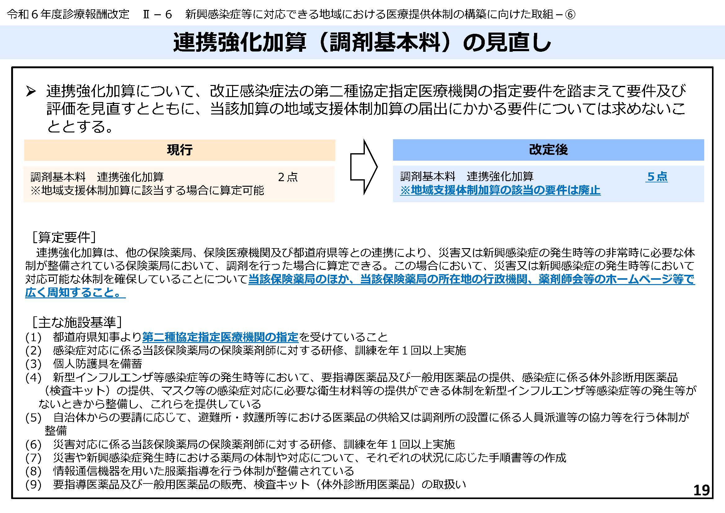 コロナ禍が落ち着き、改正感染症法に基づく医療措置協定の仕組みが定められたことを踏まえ、本改定で見直されることとなりました。