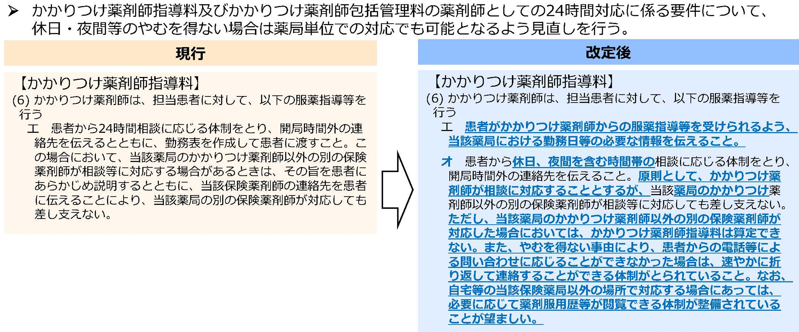 元々は患者側に不具合が無いようにという視点で「24時間」としていたが、「休日・夜間」の対応で不具合が無いだろうとの判断で、表現が緩やかになっています。