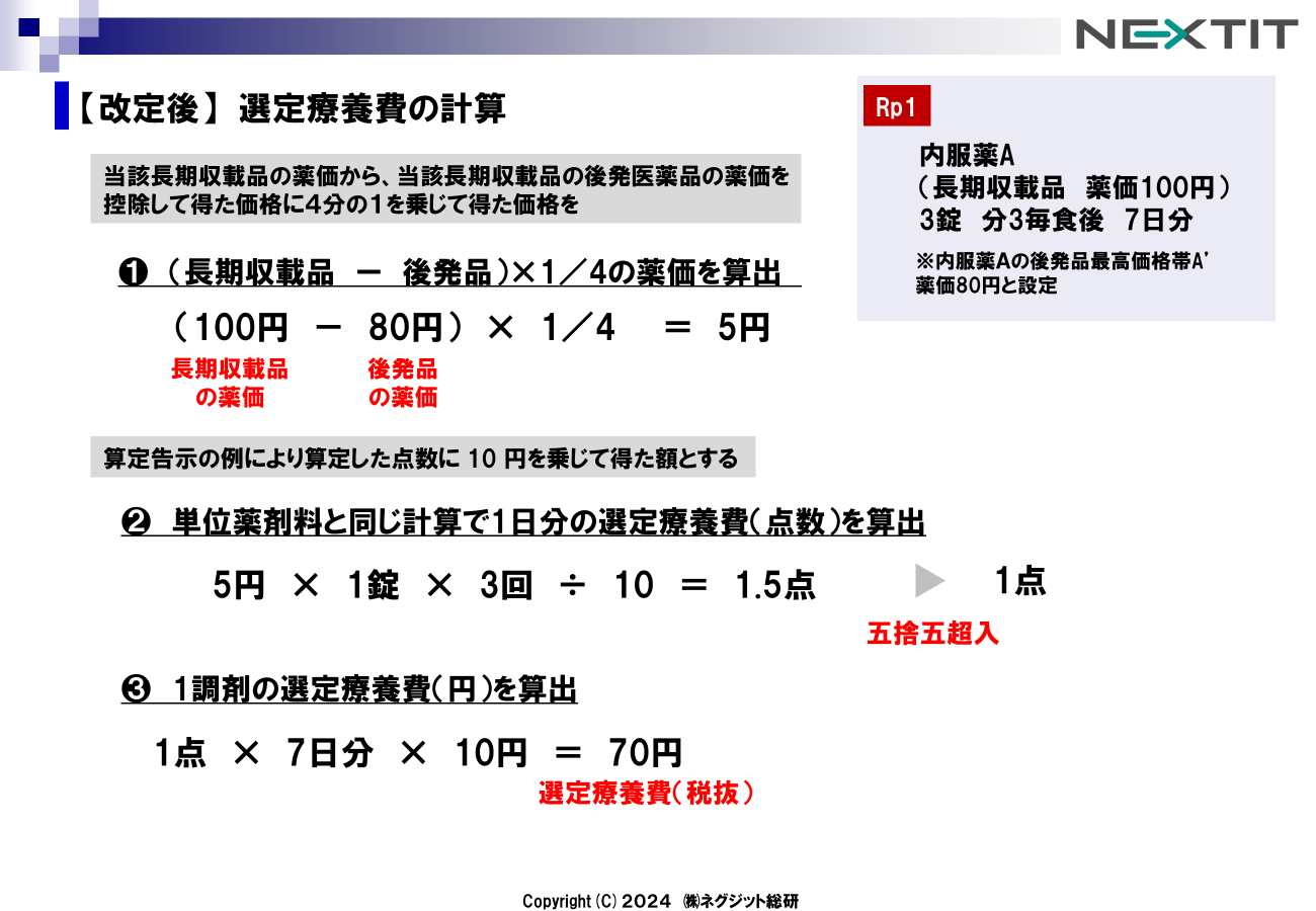 改定前の長期収載品 薬剤料の計算方法