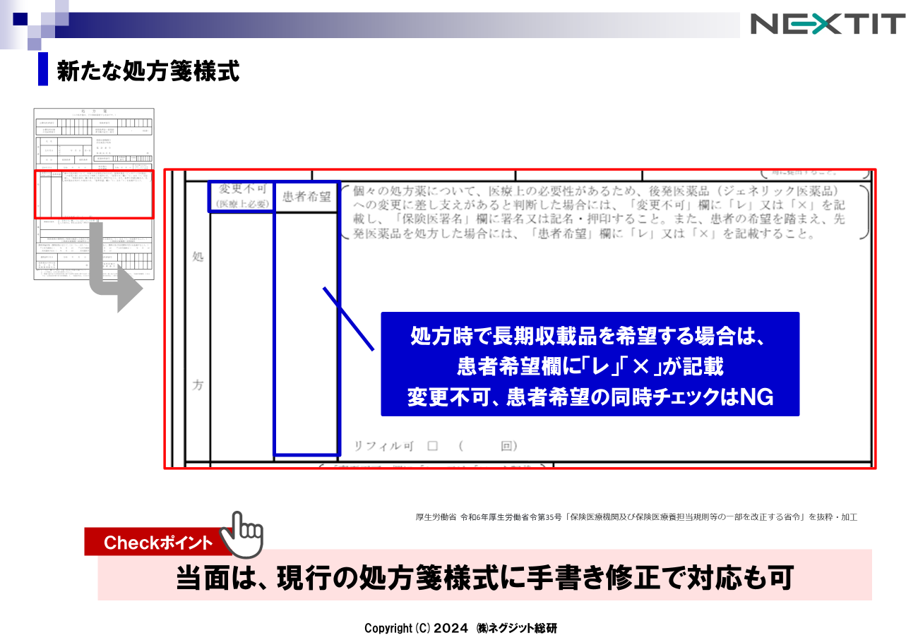 新たな処方箋様式に「患者希望」欄が追加