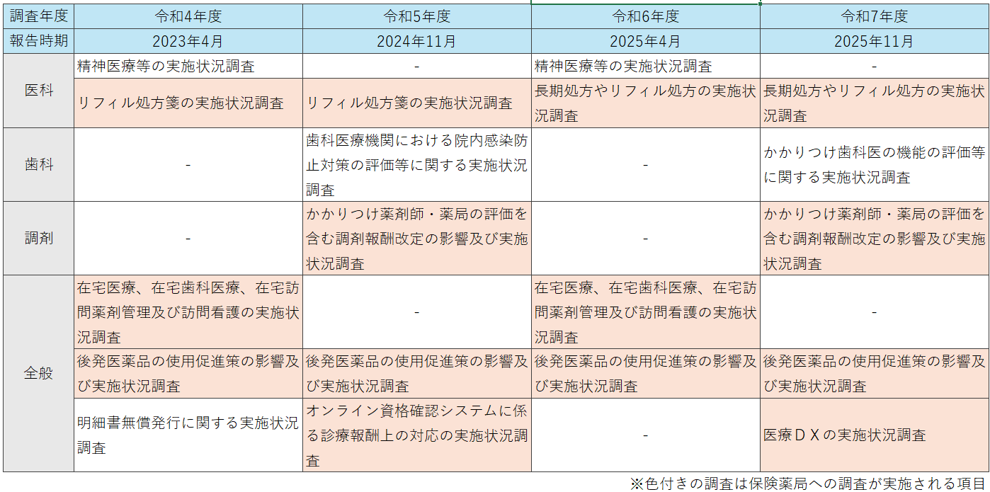 「後発医薬品の使用促進策」に関する調査は、『後発医薬品の使用促進策の影響及び実施状況調査』として毎年継続的に実施されています。