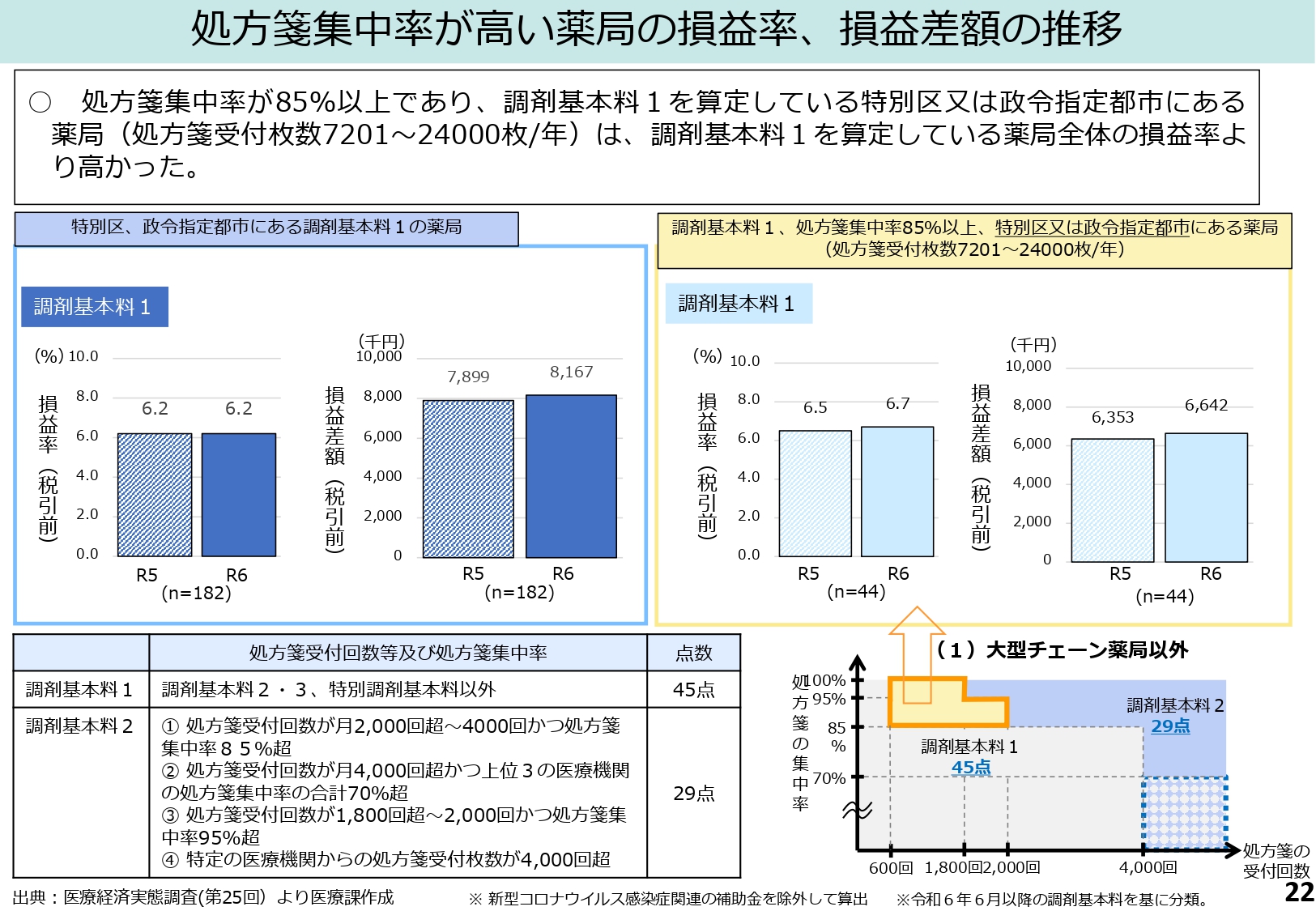 調剤基本料の見直しにあたっては、第25回医療経済実態調査の結果が複数紹介されています。
